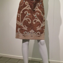 Skjørt i mykt semsket skinn med turkise stener, str liten 40