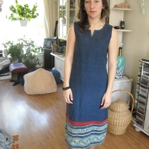 FLOTT LANG RETRO VINTAGE KJOLE BRODERIER RØDT&GULL