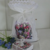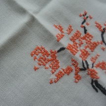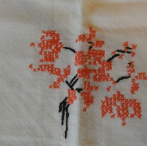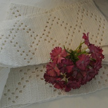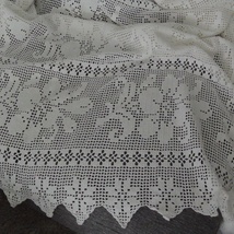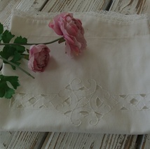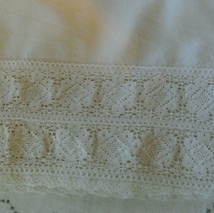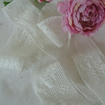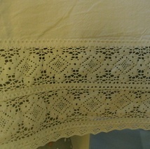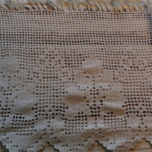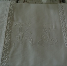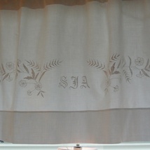 Gardinkappe med stort handsydd hvitbroderi og monogram Str 59x145cm