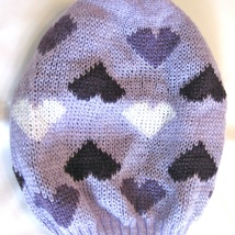 SALG! "Purple Crush" Strikket Baggy Lue med Hjerter.