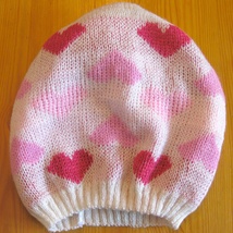 SALG! "Love in White" Strikket Baggy Lue med Hjerter.