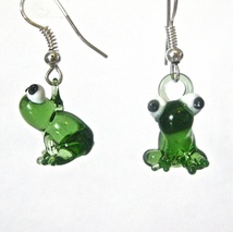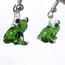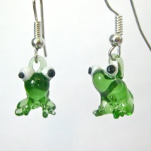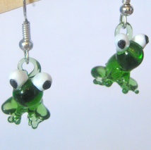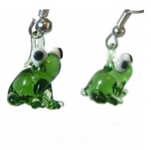 SALG! Øredobber i Glass og Sølv: Grønn Frosk