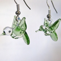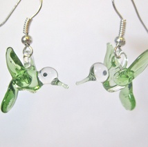 Øredobber i Glass og Sølv: Grønn Kolibri Fugl