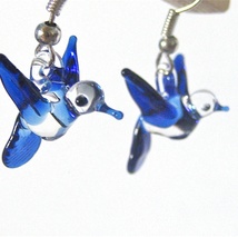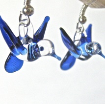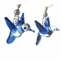 SOMMERSALG! -30% Øredobber i Glass og Sølv: Blå Kolibri Fugl