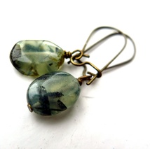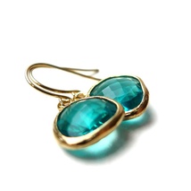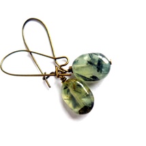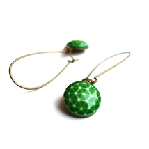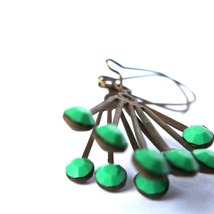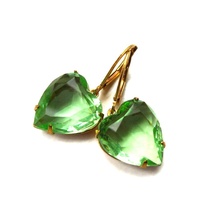 Vårgrønn ørepynt med dråpeformede glasskrystaller