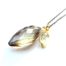 Smykke med fasetterte anheng i tofarget sitronkvarts