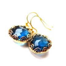 Himmelblå ørepynt med dråpeformede glasskrystaller