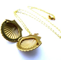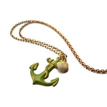 Ankersmykke i gyllengrønt med et lite kamskjell