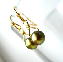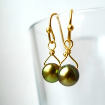 Klassisk ørepynt med olivengrønne ferskvannsperler