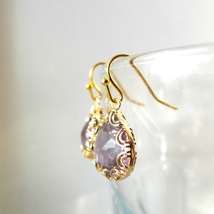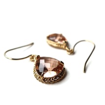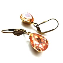 Klassisk ferskenrosa ørepynt med vintage glasskrystaller