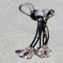 Sour and pink ... øreringer med Rosen Quartz og grønn blomst