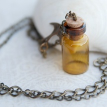 *SALG* gift ... *fri frakt* ... halssmykke med glassflaske og fugl