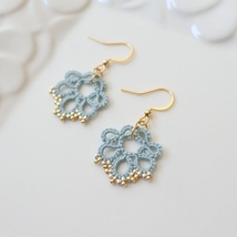 [ fluffy - røykmynte ] tatting blonder ørepynt