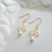 [ lerret - perlehvit ] tatting blonder ørepynt