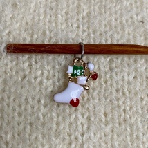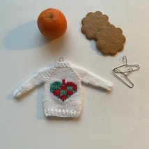 Mini hvit julegenser med julekurv-dekor og oppheng