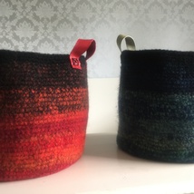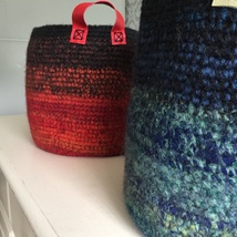 SALG 50% Håndfarget myk ull mørke lillatoner/blå/rød