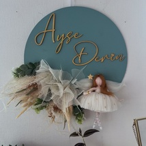 Håndlaget prinsesse dørskilt – babyrom dekor i tre og filt