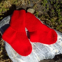 Røde sokker i ull til baby (nyfødt)