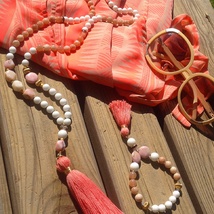 Fin gul-lilla halskjede med naturlig edelstener og en dusk
