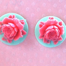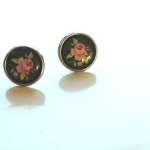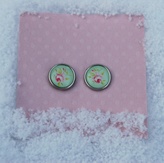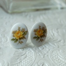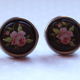 Øredobber, porselen m/rosemotiv