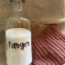 RESERVERT! Strikket koppvarmer med perlemorknapp
