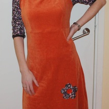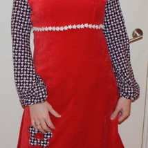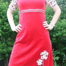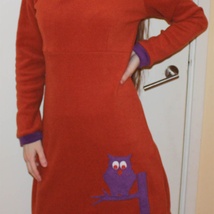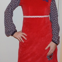 Rød velourkjole str S/M - "Høstugle" - FLYTTESALG