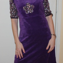 Lilla velourkjole str S/M - "flower power" - FLYTTESALG