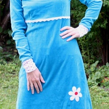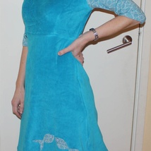 Blå velourkjole str M - "det er mange fisker i sjøen"