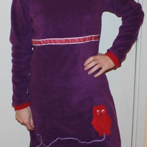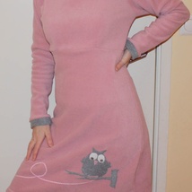 Fleecekjole/tunika med hette str M - *Rosa ugle*