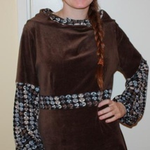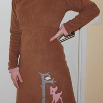 Brun fleecekjole/tunika med hette str M - *forever friends* - VÅRSALG