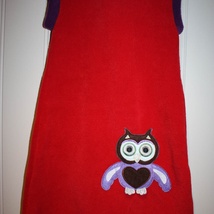 Fleecekjole/tunika med hette str M - *Orange ugle* - VÅRSALG