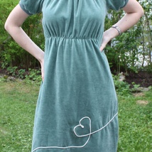 Sjøgrønn velourkjole str M - " hjerte" *FLYTTESALG*