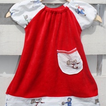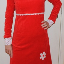 Rød velourkjole/tunika med hette str S/M - *polkadots*