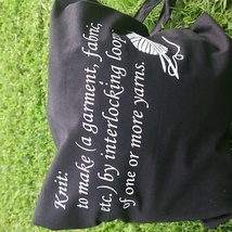 Unikt strikkenett - svart "Keep calm and carry yarn"