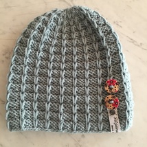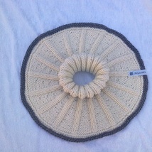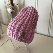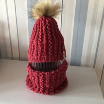 Lue med flettemønster og pelsdusk
