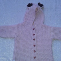 Strikket babyjakke med søt bamsehette