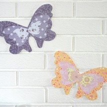 Veggpynt - 2 papirsommerfugler - lilla og gul