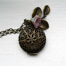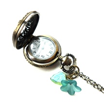 Klokkesmykke - Lommeur med filigranspanel og blomsterpynt