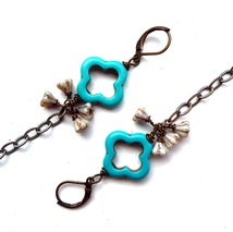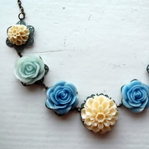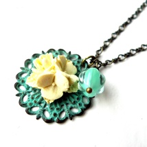 Smykke med turkise blonder og hvite blomster - Shabby chic