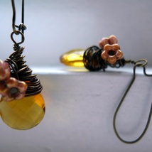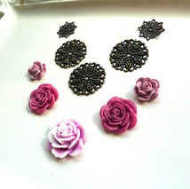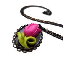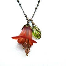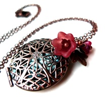 Rosa blomstersmykke med tsjekkiske glassdråper