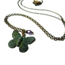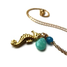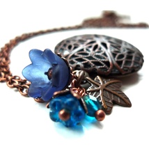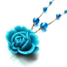 Blått rosesmykke med håndperlet vintagekjede - Kun ett tilgjengelig!