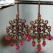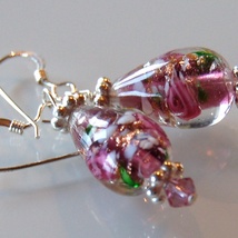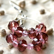 Søte krystalløredobber i rosa og burgunder