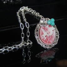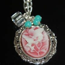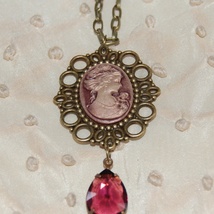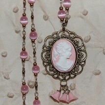 Nydelig rosa kamésmykke i vintagestil med swarovski kube
