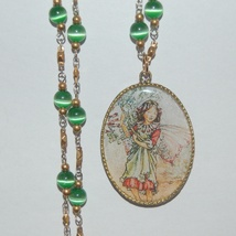 Gul englekamé med nydelig orange vintage kjede