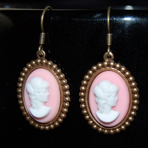 Søte rosa kaméøredobber i vintagestil