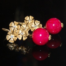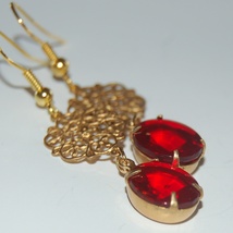 Søte røde øredobber med gullfarget filigran.