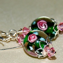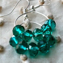 Vakker ørepynt i 925ss, swarovskikrystaller og nydelige grønne håndlagde glassperler.