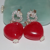 Kirsebærfarget jadehjerter med sterling sølv og tjekkiske krystaller