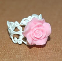 Hvit ring med rosa rose.