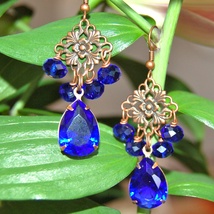 Kongeblå øredobber med tjekkisk krystallsten.